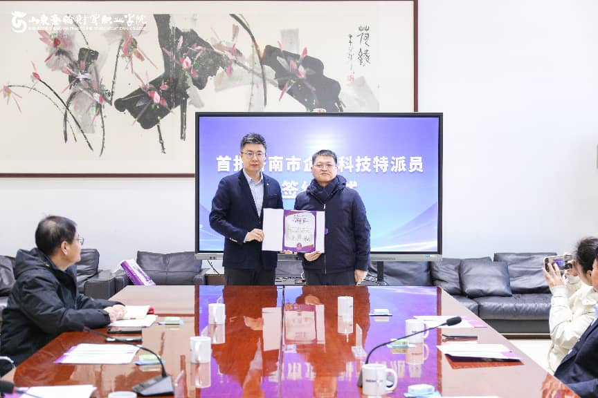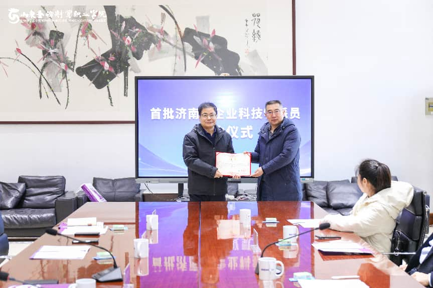 山东圣翰财贸职业学院于2026年1月21日成功举行首批济南市企业科技特派员签约座谈会。智能工学院胡伟教授成功受聘为首批济南市企业科技特派员。此次活动既是贯彻落实创新驱动发展战略的具体实践,也是深化产学研协同创新、强化企业科技创新主体地位的重要举措,标志着学校在与地方企业科技合作、人才共育领域迈出了坚实且意义深远的一步。