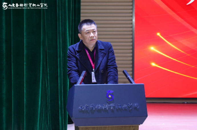在全场目光聚焦下,阎磊为“山东圣翰财贸职业学院大学生成长赋能中心”揭牌,标志着学校学生服务工作迈入全新发展阶段,一站式、专业化的学生成长服务平台正式启用。