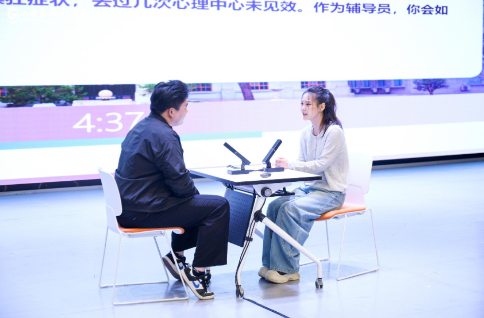 大赛分两阶段进行。第一阶段比赛设置基础知识测试和理论宣讲两个环节,经综合评分,前40名选手晋级第二阶段;第二阶段为实战比拼,4月7日,谈心谈话环节在第二报告厅进行,选手抽取场景题目后,在6分钟内模拟真实工作情境与学生开展针对性沟通,充分展现对学生成长规律的把握能力和解决实际问题的实操能力;4月8日,案例研讨环节在第一报告厅举办,选手以AB角形式抽题对战,通过“互问互答”的模式辨析案例原因、研讨解决对策,全方位考察综合分析、应急处突与协同研判能力,赛场研讨深入、亮点频现。