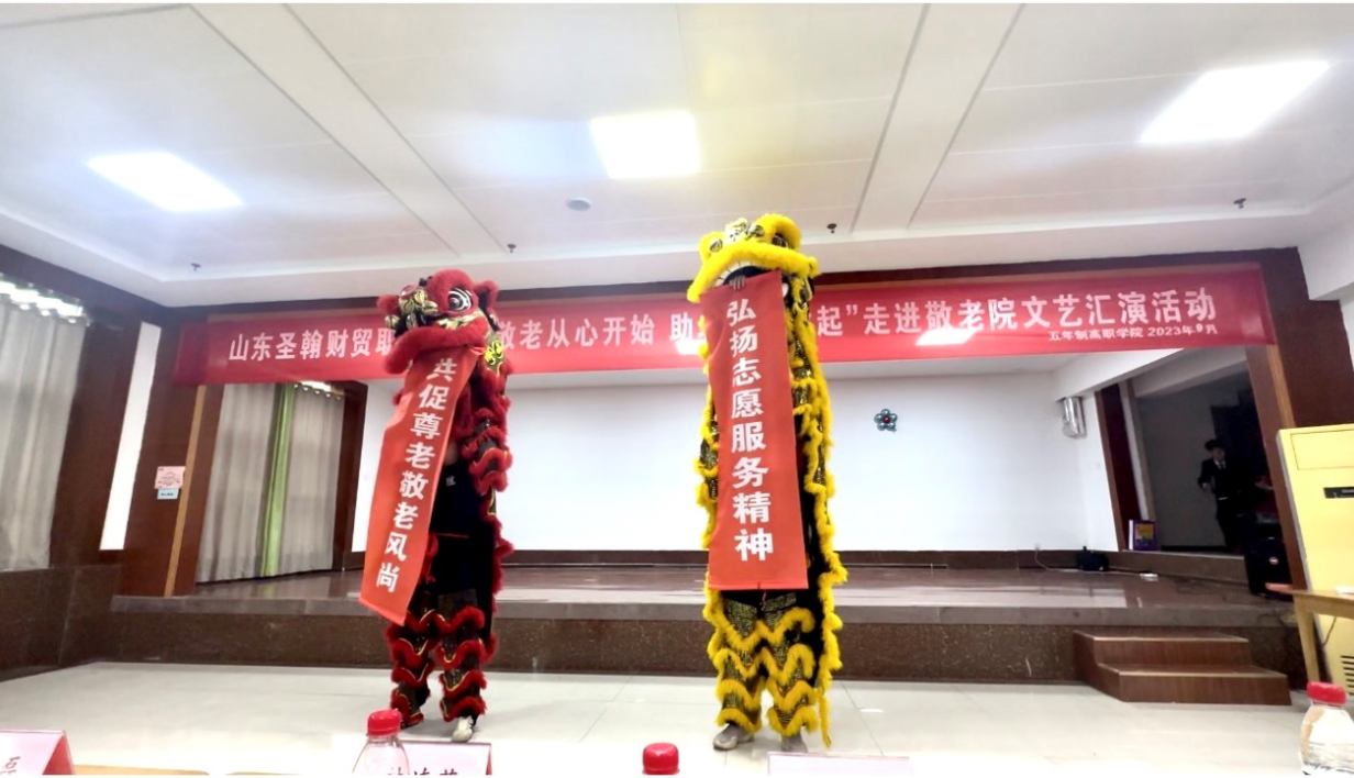 此次活动,精彩纷呈。自强不息之舞狮《龙腾狮跃舞青春》,欢庆锣鼓喜连天,龙腾狮舞送吉祥;九月山河秀,祖国溢彩,火树银花称盛世;一天日月明,大庆延年莺歌燕舞乐昌时;九州春色莺歌燕舞;四海征程狮跃龙腾。把吉祥送给敬老院的各位老人。