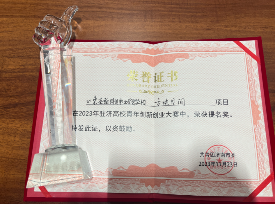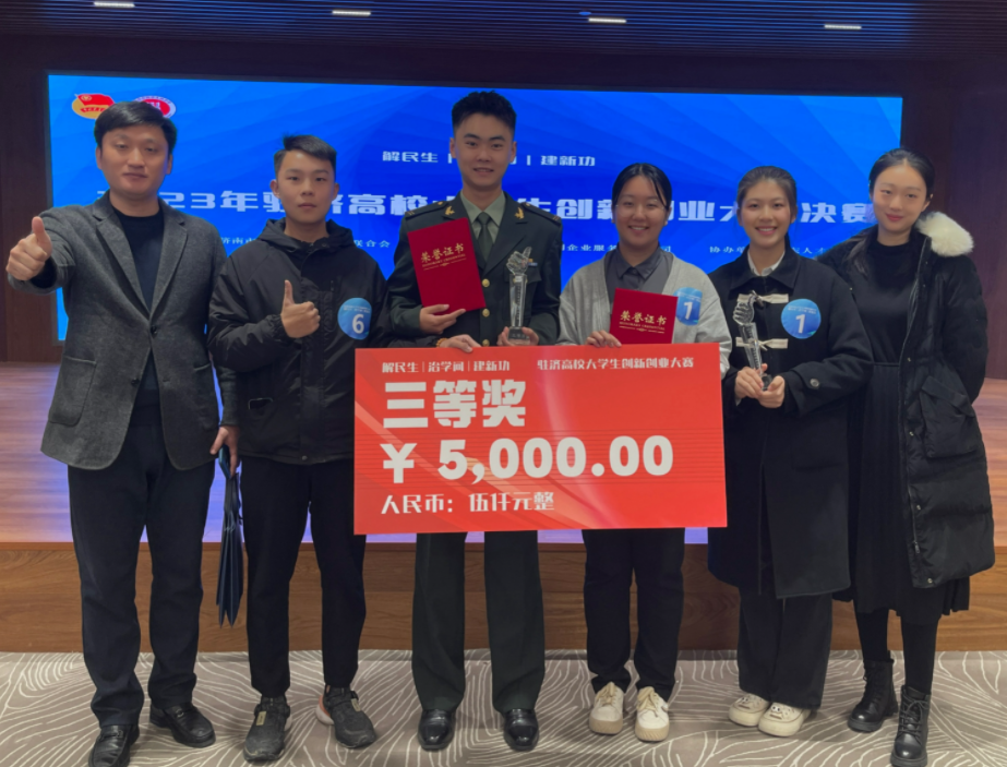 11月23日,由共青团济南市委、济南市学生联合会主办的“2023年驻济高校大学生创新创业大赛”决赛在山东省人才大厦举办。经过激烈角逐,我校“军馨陪诊” 团队获得本届大赛三等奖,“方块空间”团队获得优秀创意奖。
