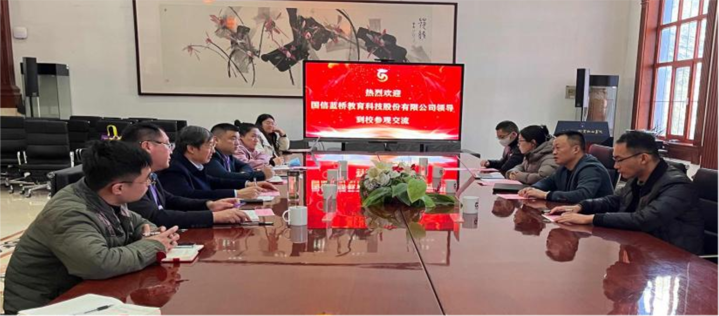 冯兴师对国信蓝桥教育科技股份有限公司代表一行的到来表示热烈欢迎。他介绍了我校近年来建设发展取得的成绩和办学特色等基本情况。