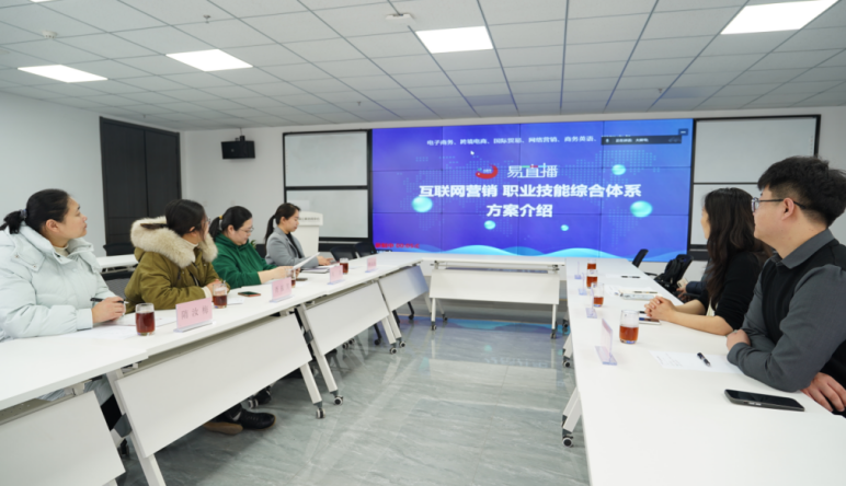 随后,双方在会议室进行了座谈交流。王颖就公司的业务范围、组织架构、企业用工需求进行了详细的介绍,就校企合作中实习实训、直播电商培训、电商直播企业孵化等方面进行了经验分享。胥振芳就商学院的概况、网络营销与直播电商专业建设、人才培养等方面进行了介绍,并向企业探寻直播电商人才培养的关键环节。