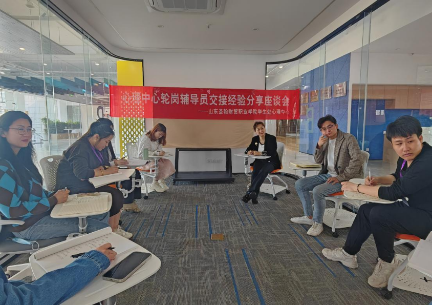 按照《山东圣翰财贸职业学院辅导员岗位管理办法(试行)》要求,为不断提高学管队伍的职业能力与专业水平,4月8日上午,学生处心理中心组织召开轮岗辅导员经验分享第二期座谈会。心理中心姚莹莹主任及张颖、张紫娟、俞艺三位老师、轮岗辅导员参会,围绕心理中心轮岗工作经验与心得分享、学习内容及下一步工作安排展开讨论与交流。