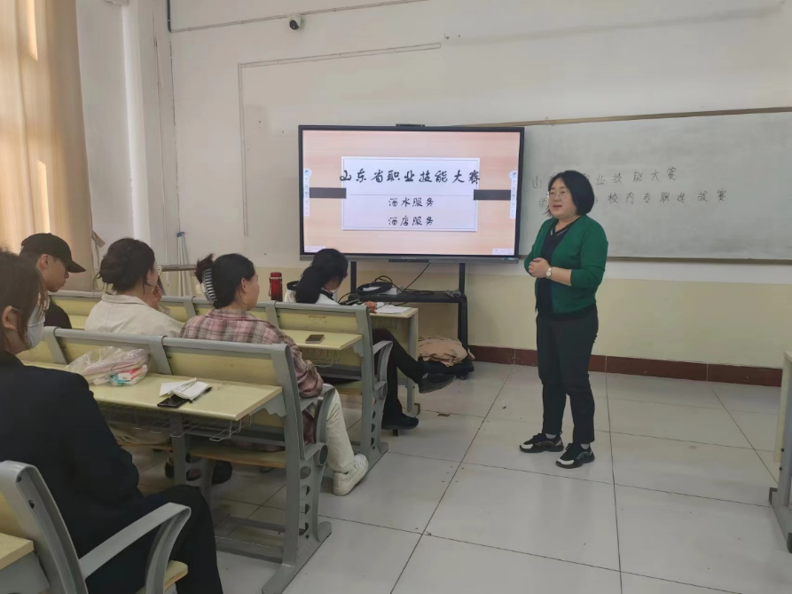 “以赛促教、以赛促学、以赛促改、以赛促建”,山东省职业院校技能大赛是检验教师教学水平和学生学习水平的一块试金石。为了选拔出最优秀的选手,也为了在技能大赛中一举夺魁,2024年4月12日下午,商学院工商管理教研室组织了山东省职业院校技能大赛酒店服务与酒水服务两个赛项的校内选拔赛。