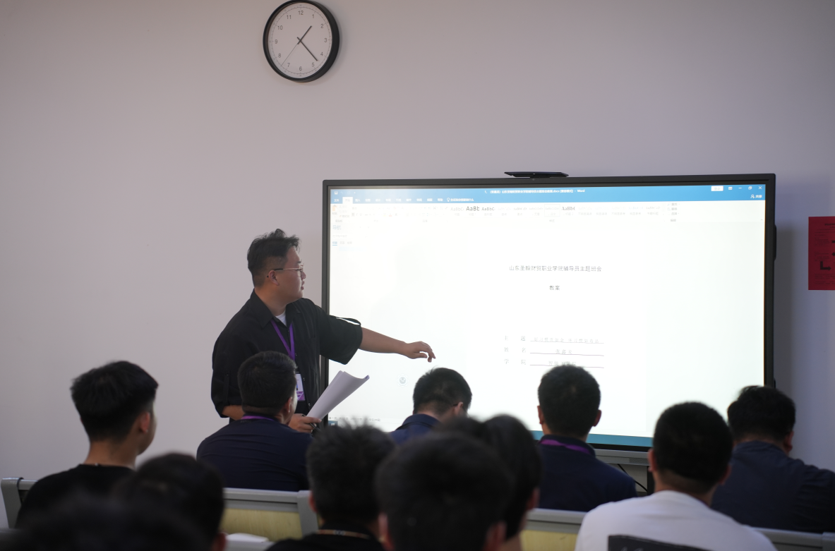 会上辅导员队伍互点互评,共同进步。学生处副处长孙建国、智能工学院副院长王栋、智能工学院团总支书记宋占喜、汽车专业教研室主任钟国伟和全体辅导员出席并担任评委,学院全体学生干部参加本次活动。会议由王栋主持。