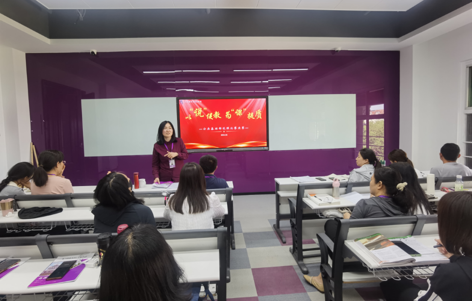公共基础部副主任黄海英主持本次比赛,对比赛的流程、评分标准进行详细讲解,同时也强调了教师参加说课比赛的重要性。她指出,本次说课比赛旨在展示公共基础部教师的教学水平和教育创新能力,促进教师之间的交流和学习,希望6个教研室推选出的6位优秀教师充分展示自己的教学特色和风格,展示公共基础部教师团队的整体实力和水平。