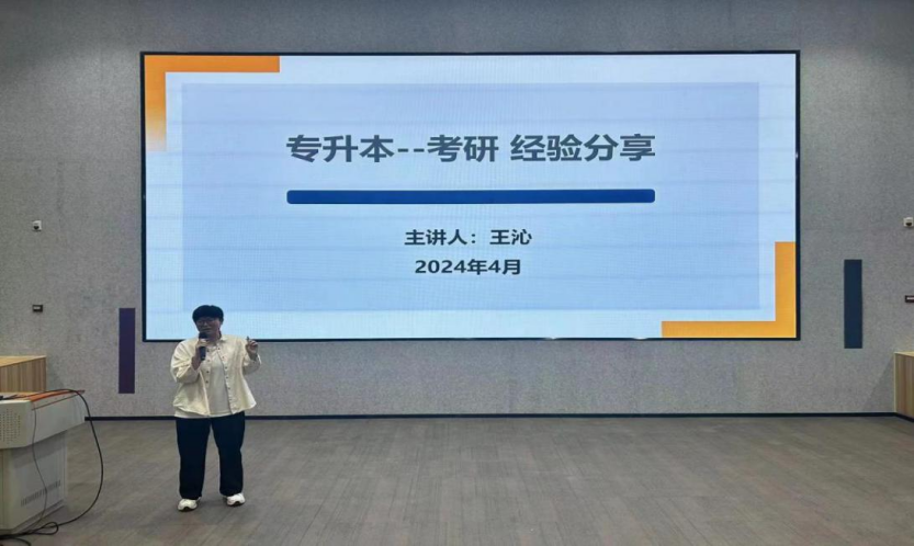 王沁,系艺术学院2019级建筑装饰工程技术1班学生,于2021年参加校内专升本培训,顺利考取了山东青年政治学院本科,2024年考取鲁东大学运动训练专业研究生。分享会上,王沁同学从如何更好地规划大学生活,专升本备考经验、学习方法、心理调节、职业规划等方面向同学们进行经验分享。