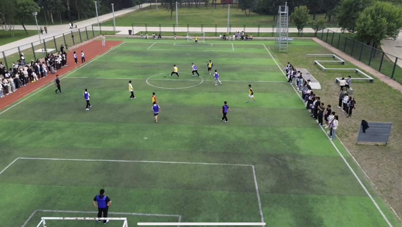 商学院师生齐聚操场,共同见证了这场体育盛宴。赛场上,师生们身着不同颜色队服,精神饱满,斗志昂扬。随着主裁判于千的一声哨响,比赛正式开始,双方队员迅速进入状态,展开了激烈的争夺。
