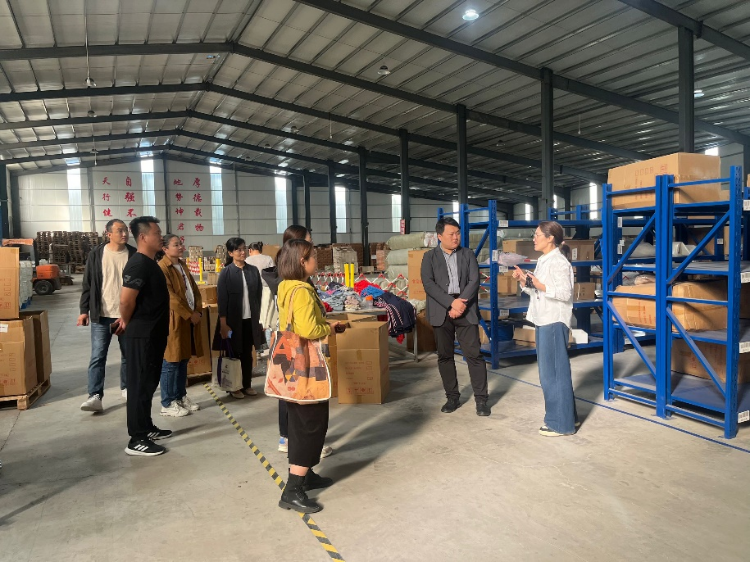 在亓雯和技术负责人的陪同下,圣翰学院调研团先后参观了山东乾亿达贸易有限公司的办公地点及电商仓库。山东乾亿达贸易有限公司是一家朝气蓬勃的电商企业,从入驻天猫门店到加入快手、抖音直播行业,该公司积累了丰富的电商运营经验、行业资源和运营技巧。