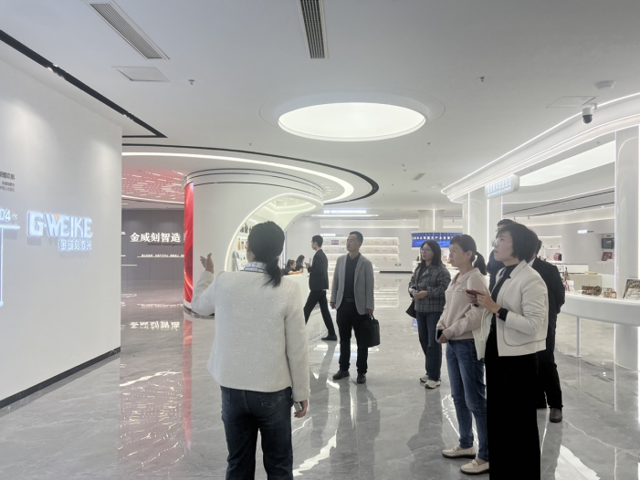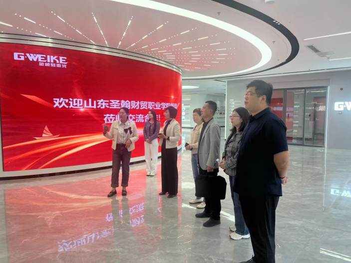 学院一行人参观了济南金威刻科技股份有限公司的新型智慧展厅,详细了解了企业的生产流程、技术实力及市场布局。济南金威刻科技股份有限公司是一家专业从事激光加工智能装备研发、生产及销售的高新技术企业。公司自2004年成立以来,已发展成为激光领域的佼佼者,拥有国家专利数十项,并在全球多个国家和地区设立了分公司及海外子公司。