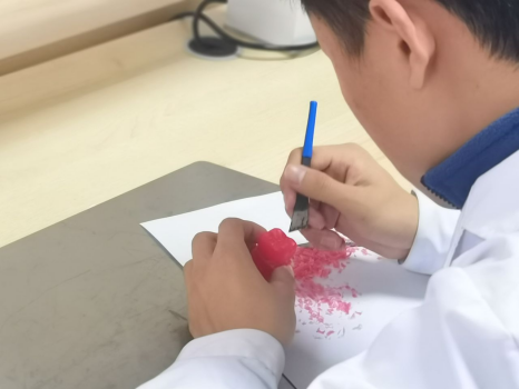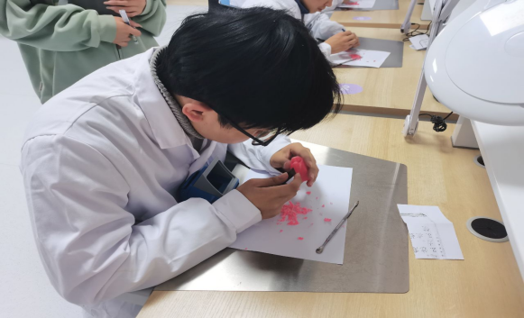 活动伊始,陈淑梅详细讲解了比赛流程以及比赛的注意事项,并对参赛选手寄予厚望,鼓励同学们超越自我。比赛开始前,四位参赛选手随机抽取需要雕刻的牙齿。比赛开始后,选手们纷纷展现出了扎实的技艺和严谨的工作态度,充分展现了口腔医学技术专业学生的专业水准和实践能力。比赛过程紧张有序,在比赛的30分钟里,每位选手全神贯注,不仅展示出专业精湛的雕刻技术,还展现出精益求精的工匠精神。比赛结束后,陈淑梅依据蜡型牙体的基本外形、尺寸标准、冠面形态等多方面进行综合评判,并对同学们在比赛中的表现给予肯定。