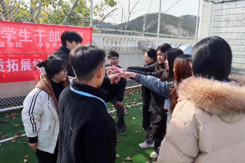 座谈会结束后,学生干部们满怀期待地投入到一系列团队辅导游戏中。首先进行的是“大树与松鼠”热身活动,这个简单却充满趣味的游戏迅速吸引了所有参与者的注意力,大家在欢声笑语中锻炼了集中注意力的能力。紧接着的“齐眉棍”活动则让参与者深刻体验到团队合作的真谛,每个团队成员都必须全神贯注,协调一致,才能将棍子平稳地放到地上。