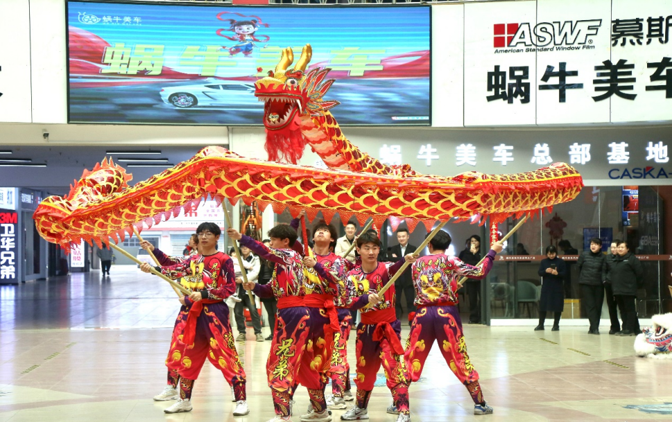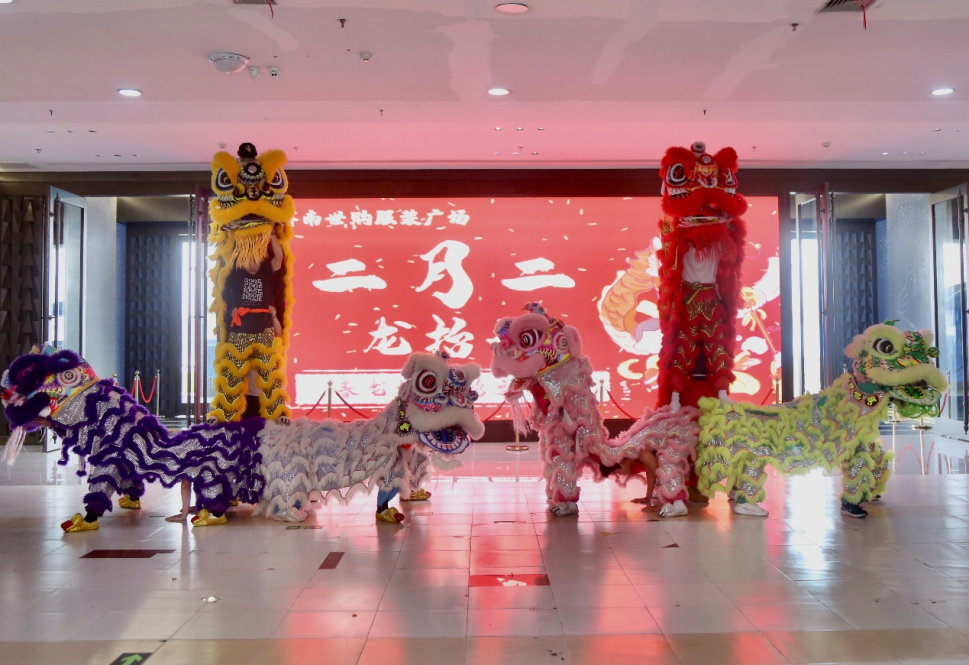 “龙行踏绛气,天半语相闻”,金龙雄狮在广场内进行穿梭,彰显传统文化的魅力并送上深深地祝福:“龙腾二月春意浓,万物更新好兆头,春回大地龙头抬,繁花似锦福自来,2025年龙抬头,愿大家事业如龙腾飞跃,步步高升;生活似龙舞翩翩,幸福美满,好运连连。”