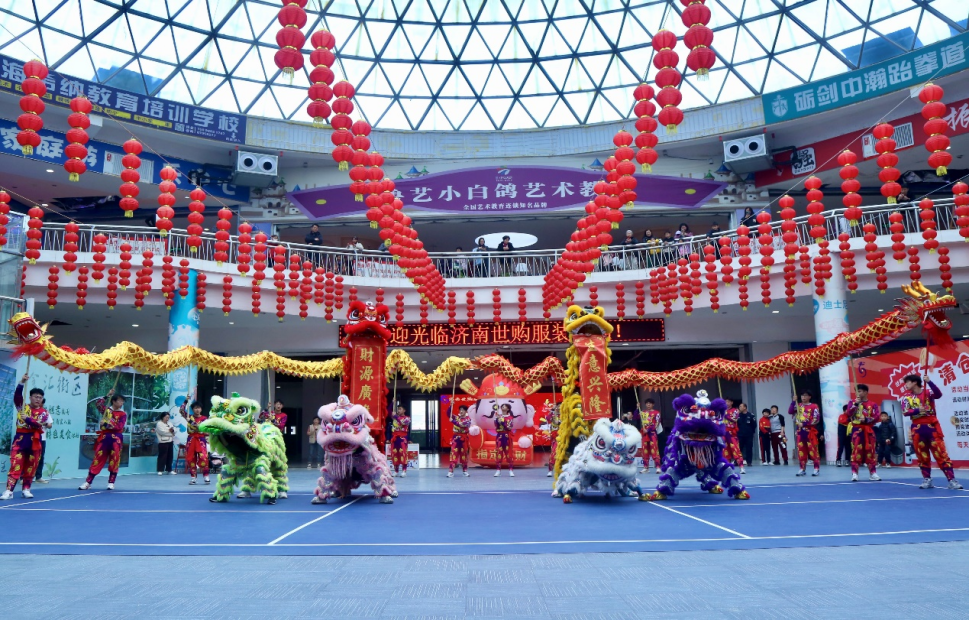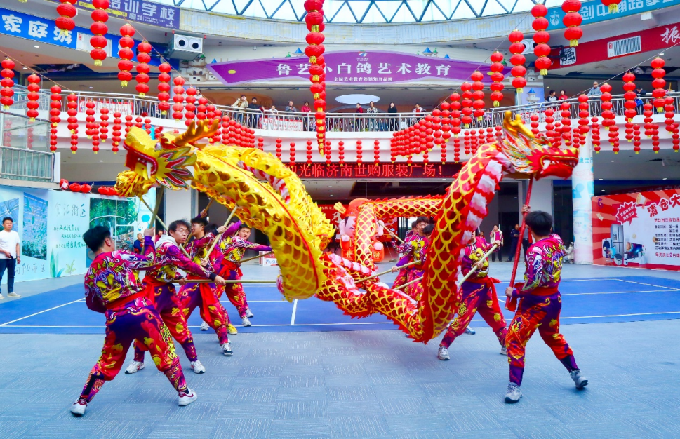 3月1日上午,山东圣翰财贸职业学院艺术学院以“青春学子展风华,舞龙舞狮贺新程”为主题赴济南世购及西市场分别开展了舞龙舞狮传统民俗表演,精彩绝伦的表演让现场观众共同感受民俗文化的魅力与圣翰学子的青春活力。