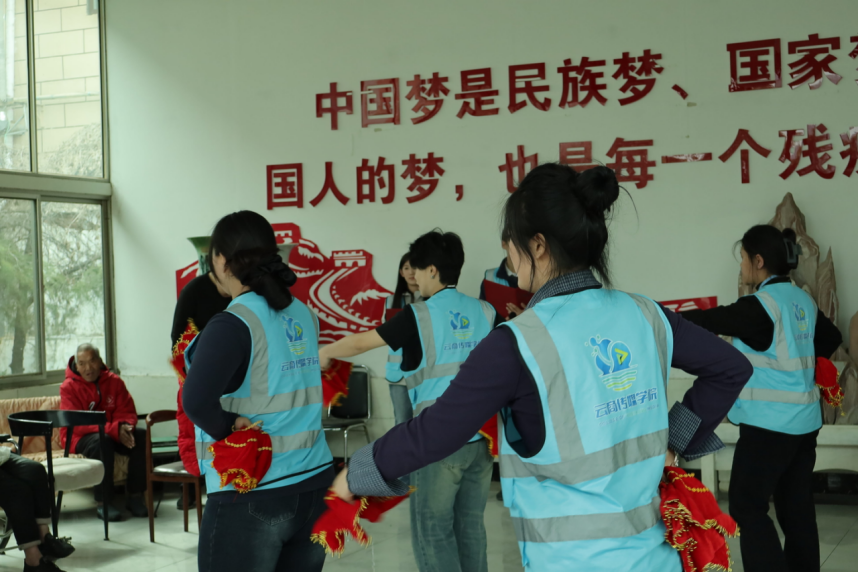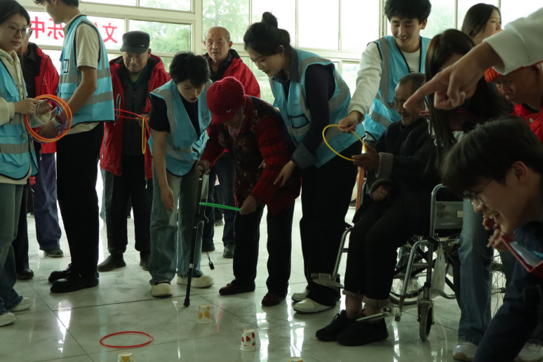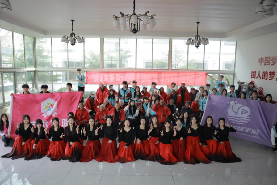依托学科特色,两院志愿者将专业技能融入志愿服务——云商传媒学院志愿者架设专业设备,为老人拍摄“时光记忆”摄影集,记录下灿烂笑容,设计的互动套圈游戏,手绘的卡通图案奖品让老人们笑逐颜开;艺术学院“艺彩人生”团队《美丽中国》舞蹈表演展现出舞蹈专业学子过硬的专业本领。