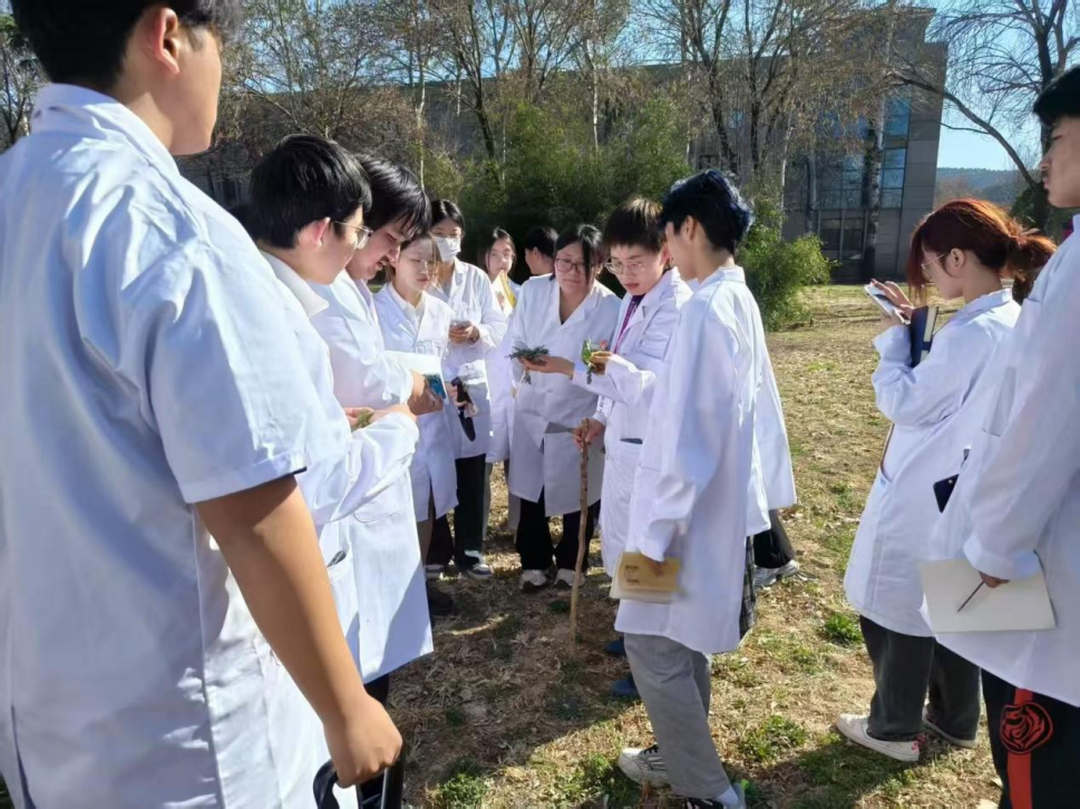 在实践课堂中,学生们积极参与,认真观察并记录每种药用植物的特征和药用价值。大家纷纷表示,通过实地观察和老师的讲解,对药用植物有了更直观的认识,理论知识也得到了进一步巩固。2024级中药学专业1班的一位同学表示:"王娜老师的讲解非常生动,通过这次实践课,我对药用植物有了更深入的了解。以前只是在书本上看到这些植物的图片和描述,今天亲眼见到并触摸到它们,感觉完全不一样。"2班的一位同学也表示:"这次实践课让我对中药学产生了更大的兴趣。通过实地观察,我不仅认识了更多的药用植物,还了解了它们的实际应用,这对我们未来的学习和职业发展都有很大帮助。"