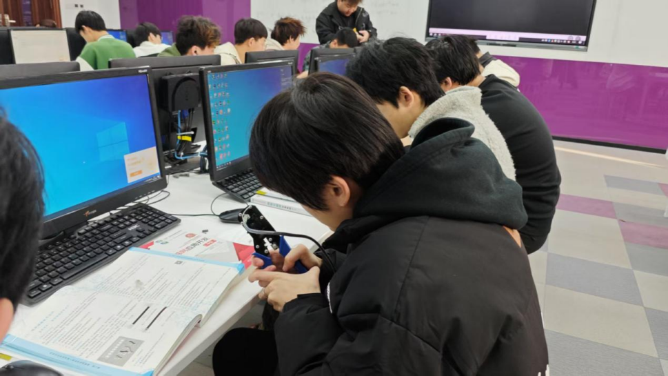 据悉,网线制作虽属基础技能,却是网络工程师的基本技能。计算机教研室通过“讲解-示范-实操-点评”四步教学法,让学生在真实工作场景中锤炼工匠精神。本学期计算机教研室已在全部六个专业开展Java项目开发、局域网组建等多项专项实训,后续还将引入企业真实项目,持续推进技术技能人才培养模式创新。