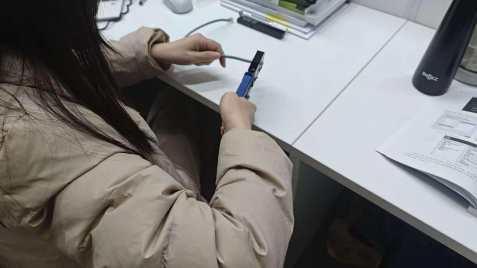 课堂上,教师以"网线制作规范与故障排查"为主题,通过微课视频演示了双绞线分类、568A/B线序标准及水晶头压接技巧,重点讲解直通线与交叉线的应用场景差异。"剥线长度要精准,线序排列需对齐,压接力度要均匀",老师一边示范一边强调操作要点。随后,80名学生分成10组,在教师指导下使用剥线钳、测线仪等工具展开实操。从剥除外绝缘层到分线排序,从剪齐线头到水晶头压接,学生们在反复练习中逐渐掌握技术要领。实训室中测线仪此起彼伏的"滴滴"声,见证了条条合格网线的诞生。