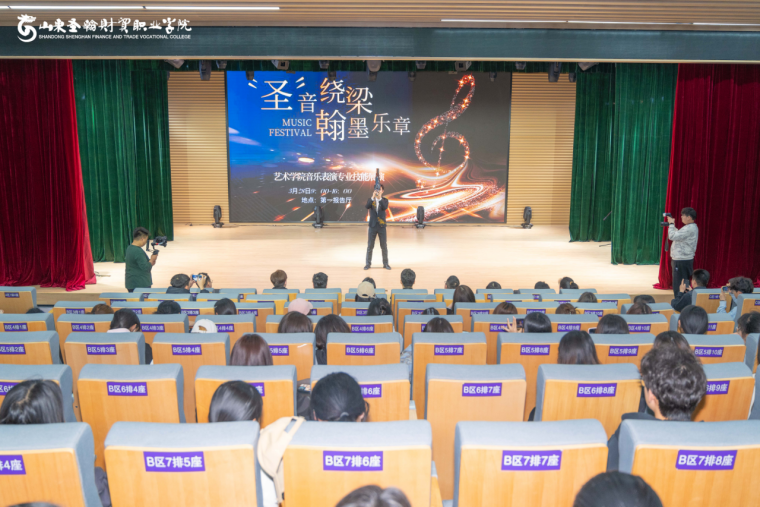 近日,艺术学院2025级音乐表演专业基本功展演在学院第一报告厅成功举办。本次展演以"圣音绕梁·翰墨乐章"为主题,通过传统民乐、美声、流行等多种音乐形式的精彩呈现,展现了音乐表演专业学生的扎实功底和艺术表现力。 下午,溶洞音乐徐总携团队全程观摩,并于活动后展开宣讲。本次展演尝试通过学院官方抖音号全程直播,吸引线上线下师生共同参与。