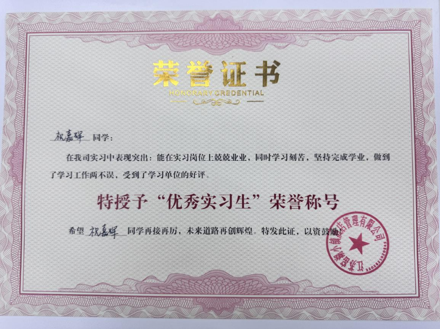 近日,商学院2022级学生曲峻霖、祝嘉辉、孙宇在江苏窑湖小镇酒店管理有限公司实习期间表现优异,凭借扎实的专业技能、突出的工作能力和高度的职业素养,获评企业“优秀实习生”荣誉称号。这一荣誉不仅是对三位学子个人能力的肯定,更是校企协同育人成果的生动体现。