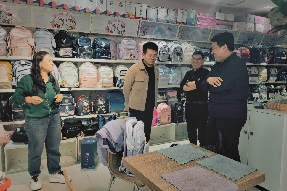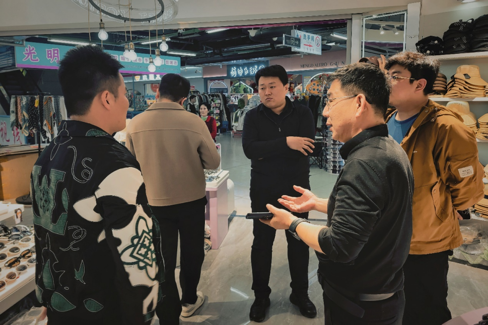 4月14日下午,云商传媒学院院长李学治、济南布丁网络信息服务有限公司总经理王兴海一行到访济南西市场小商品批发商城,与市场内文创、玩具、日用百货等领域的多家商户代表展开深度洽谈,共同探索“学生直播团队助力传统商户线上转型”的合作路径。这场别开生面的对话,为传统商贸市场的数字化升级注入新动能。