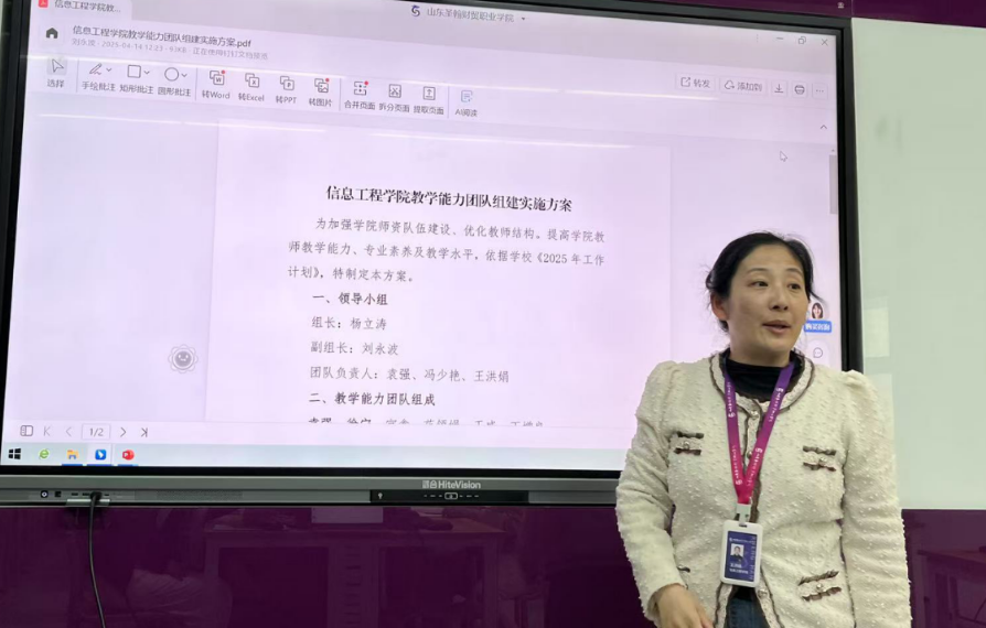 2025年4月18日,信息工程学院计算机文化基础教研室召开教学能力大赛启动会。本次会议由教研室主任王洪娟老师主持,全体教研室老师齐聚一堂,共同开启这场教学能力提升的征程。