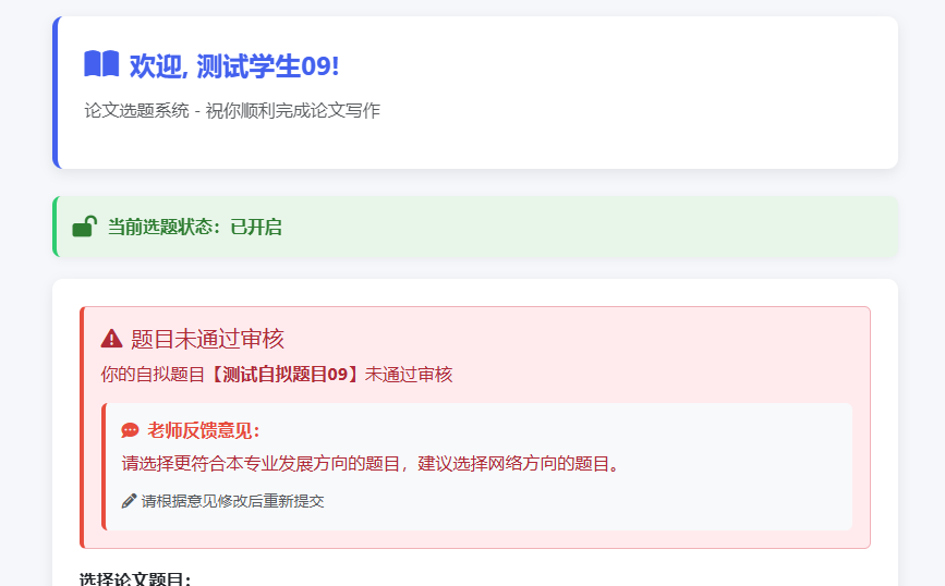 以往毕业论文管理依赖人工操作,存在流程繁琐、信息不对称、进度跟踪难等问题。新系统通过模块化设计,整合了智能选题匹配、材料提交审核、过程性材料收集等功能,显著降低了管理成本。学生可实时提交材料并接收指导教师反馈,教师则能通过系统动态监控学生进度,及时介入指导,形成“提交-反馈-修正”的良性互动机制。