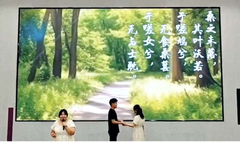 备赛期间,教师们充分发挥专业优势,精心选取《青春》《氓》《这盛世如您所愿》等经典篇目,并利用课余时间对学生进行朗诵技巧、情感表达和舞台表现等方面的指导。教师们耐心讲解诗歌背景,帮助学生深入理解作品内涵,使诵读更具感染力。参赛学生表示:“在老师的指导下,我们不仅提升了朗诵水平,更深刻感受到中华文化的博大精深。”