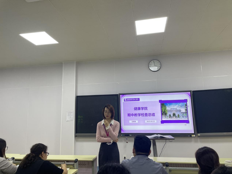 为进一步规范教学管理,提升教学质量,总结阶段性成果,健康学院近日组织开展了2024-2025学年第二学期期中教学检查工作。4月23日下午,健康学院院长汪娟海主持召开了期中教学检查总结会议,全面总结了检查情况,并重点提示各位专职教师要确定好接下来的发展方向和工作重点。学院全体专职教师及相关负责人参加了会议。