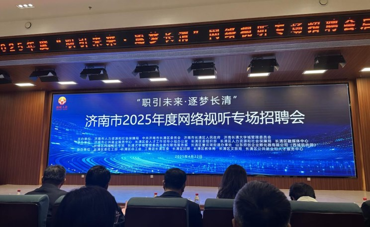 2025年4月22日,由济南市人力资源和社会保障局、中共济南市长清区委员会、济南市长清区人民政府及济南长清大学城管理委员会联合主办的“职引未来·逐梦长清”2025年度网络视听专场招聘活动在济南长清区正式启动。山东圣翰财贸职业学院云商传媒学院组织50名应届毕业生参与活动,现场,学生们积极与企业对接,展现传媒学子风采。