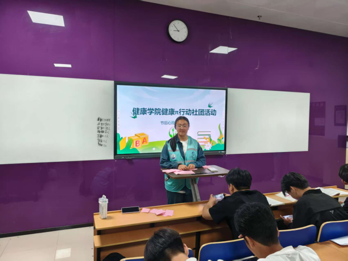 2025年5月8日,为帮助学生尽快从假期状态回归到紧张有序的学习生活中,健康学院“健康π行动社”精心组织了假期收心轮班宣讲活动,覆盖学院多个专业班级,取得良好反响。