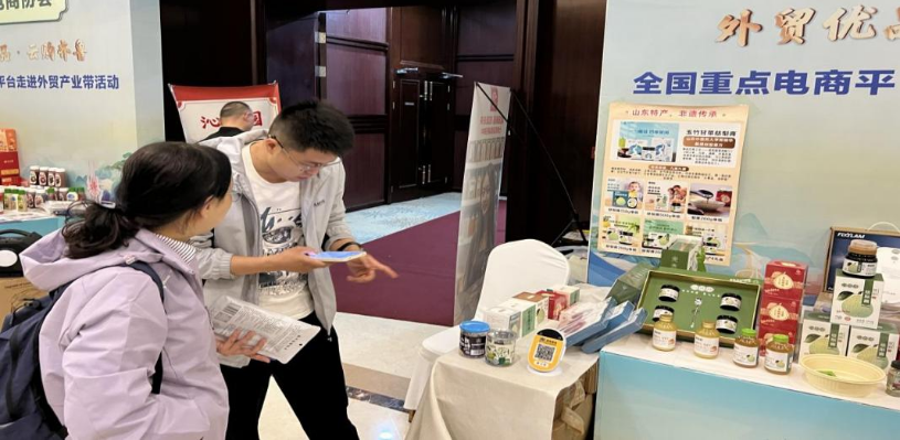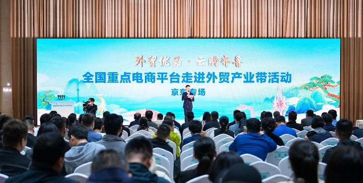 为进一步拓宽学生实习就业渠道,5月9日,云商传媒学院教师于芃、杨晶晶共同参与了由山东省商务厅联合山东广播电视台、阿里巴巴集团及京东集团共同举办的“外贸优品·云购齐鲁”全国重点电商平台走进外贸产业带对接会。此次活动在临沂市沂河宾馆盛大启幕,现场氛围热烈,交流互动频繁,吸引了省内众多商贸流通企业、电商供应链企业及外贸企业踊跃参与。