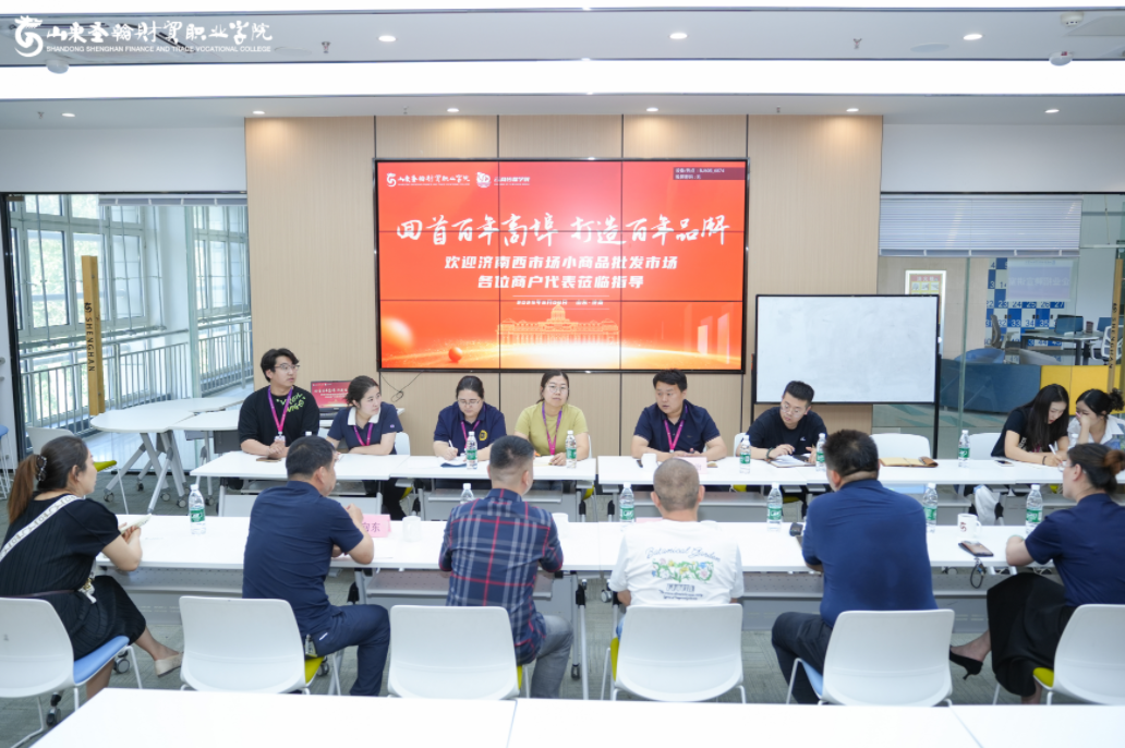 2025年6月4日,山东圣翰财贸职业学院云商传媒学院与济南西市场小商品批发市场在创梦空间路演室联合举办“回首百年商埠,打造百年品牌”直播带货合作洽谈会。济南西市场小商品批发市场管理办公室负责人刘学辉、济南西市场喜淘、贝贝城、利得隆等商户代表与云商传媒学院院长李学治及专业教师团队展开务实交流。