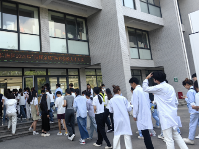 比赛当日拂晓,艺术学院438名参赛学子精神饱满,整装出发。抵达济南幼高专候考区,紧张而有序的氛围弥漫:有学生专注默背复习要点,有小组热烈讨论实操易错细节。带队老师们穿梭其间,及时答疑解惑,用温暖的话语为学子们加油鼓劲。上午的理论考试涵盖保育行业前沿知识与核心要点,挑战学生的知识储备与灵活运用能力。艺术学院学子沉着冷静,审题细致,作答工整。下午的实操考核是真正的“试金石”。在模拟的幼儿进餐、晨检、新生儿抚触和婴幼儿被动操等项目中,学生们化身专业保育师,动作规范娴熟,观察细致入微,将关爱融入每一个细节,充分展现了扎实的技能功底和良好的职业素养。
