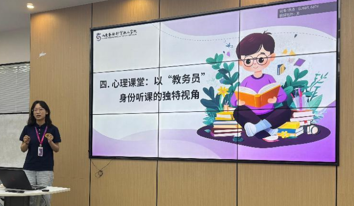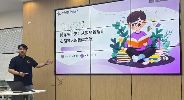 轮岗教务员顾轩嘉与綦晖老师将教务岗位与轮岗经历相结合,给大家带来一场别开生面的“从教务管理到心理育人的觉醒之旅”主题分享,凭借丰富的经验和深刻的见解,讲述了从传统教务管理思维向心理育人理念转变的历程,分享了在教育实践中如何关注学生心理健康,将心理育人融入日常教学与管理工作。两位老师的分享为教育工作者和参与者们提供了全新的视角和思路。