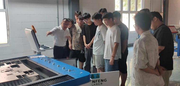 随后,学生们在韩立程的指导下,分组进行了实际操作。韩立程手把手教学,针对学生们操作过程中出现的问题,如切割边缘毛糙、雕刻深度不均匀等,进行一对一指导,通过调整功率、速度等参数,现场演示优化效果,让抽象的技术原理变得触手可及。学生们纷纷表示,通过此次课堂,他们对激光切割技术有了更加深入的了解,也更加坚定了从事这一行业的决心。