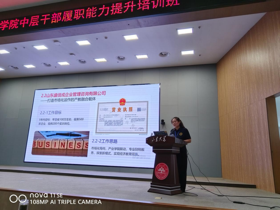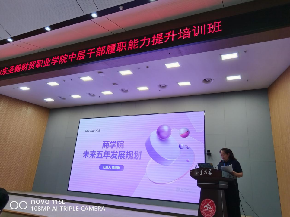 2025年8月6日,山东圣翰财贸职业学院商学院院长盖晓艳在学校“中层干部履职能力提升培训班”分组讨论中,系统阐释《商学院五年发展规划》。学校领导及特邀专家现场把脉定向,提出建设性意见。