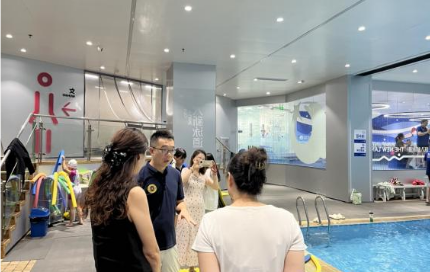 调研团随后走进海豚之星标准实训泳池、儿童教学池及陆上体能训练区,重点查看水质监测、安全动线、教学教具配置。现场观看企业教练现场“一对一泳姿纠正”等教学流程,让教师直观了解企业用人标准与学院教学差距,为后续课程更新提供实景依据。
