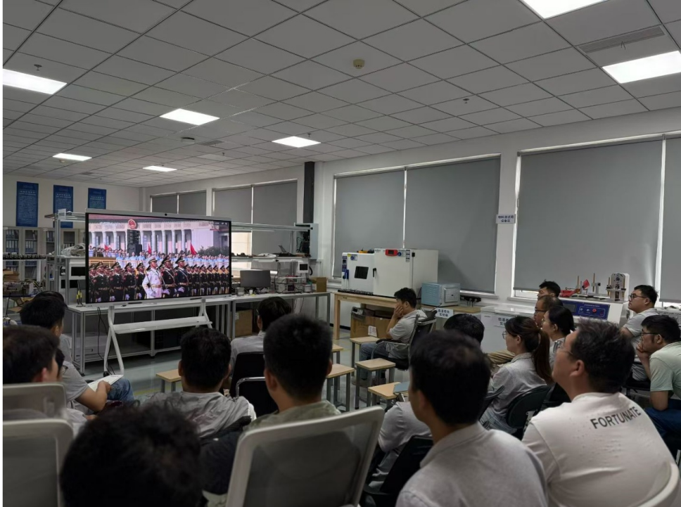 2025年9月3日,智能工学院在山东艾诺智能仪器有限公司实习的20名学生,与企业员工共同观看了“纪念中国人民抗日战争暨世界反法西斯战争胜利80周年”阅兵活动。此次活动是学院“校企协同育人”理念的生动实践,将爱国主义教育融入实习环节,引导学生铭记历史、砥砺前行。