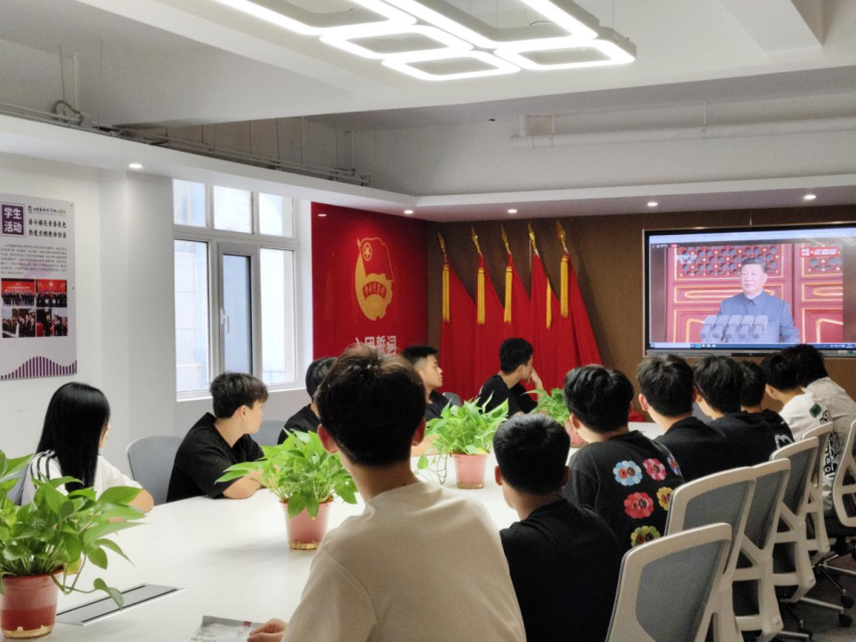 9月3日,为铭记历史、缅怀先烈,传承抗战精神,弘扬爱国主义情怀,学校团委组织学生干部在团学活动中心集中收看“纪念中国人民抗日战争暨世界反法西斯战争胜利80周年"大会直播。