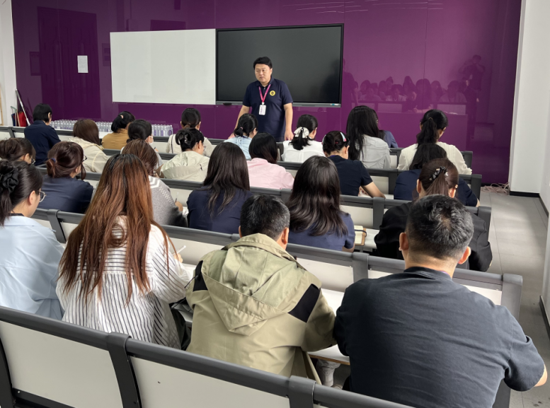 随后,教学秘书赵冯冯围绕“分工明确、操作规范、应急有序”三大目标,开展迎新工作专项培训。她首先明确了各岗位人员的迎新职责,确保“事事有人管、人人有专责”;接着聚焦钉钉工作台的实操应用,通过现场演示、步骤拆解,详细讲解新生学院报到登记、宿舍分配确认等核心功能的操作流程,确保工作人员熟练掌握,提升迎新效率;同时,针对往年迎新工作中可能出现的信息登记误差、突发需求响应等问题,逐一给出解决方案与应急处置预案,为迎新工作平稳推进筑牢“安全阀”。