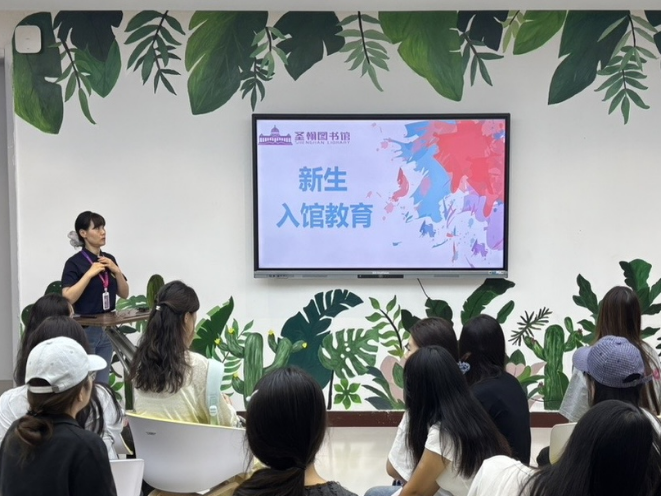 活动伊始,图书馆馆长高菲化身“知识引路人”,为新生带来一场干货满满的图书馆“入门指南”介绍,向新生们介绍图书馆的馆舍布局、资源分布、借阅情况、读者协会以及“阅读沙龙”“周末影院”“非遗手作”等品牌活动。图书馆开放式的空间设计,集图书借阅、智慧阅读、报刊阅览于一体,让学生们在其中感受书香氤氲,丰富精神世界。