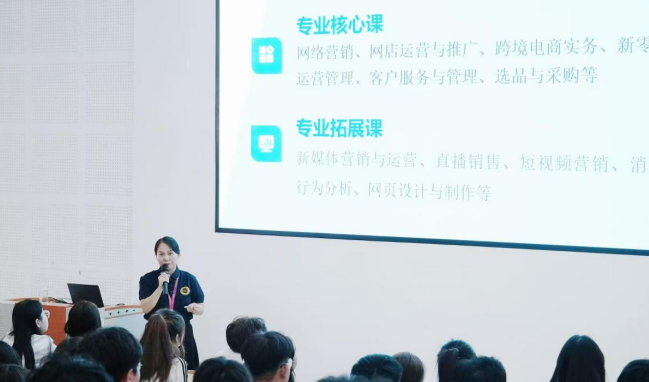 在专业内涵解读环节,教师们结合数字经济时代发展趋势,生动阐释各专业的时代价值与特色优势,强调专业培养聚焦 “实战化” 与“数字化”双核心,既注重理论知识的夯实,更强化实践技能的锤炼。课程设置上,普遍采用“基础+核心+实践”的三层架构,融入AI技术应用、数字营销、新媒体运营、数据分析等前沿内容,并随行业动态持续更新,确保学生所学与市场需求紧密衔接。实践保障方面,学院配备先进的专业实训实验室,并与企业开发实训项目,为学生提供从模拟到真实、从校内到行业的无缝衔接实践平台。