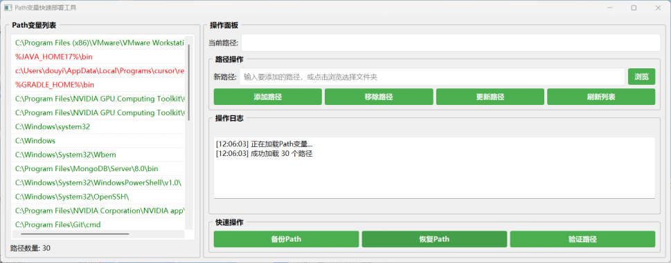 据悉,“PathManager”工具针对不同操作系统平台,创新性地实现了一键式环境配置、多版本兼容管理、智能故障诊断三大核心功能。该系统可自动识别并配置Java、Python等主流编程语言的环境变量,支持同时管理多个开发工具版本,并能智能检测和修复常见配置错误。在实际教学中,使用该工具后,学生们平均节省了约85%的环境配置时间,使得课堂得以更加专注于编程技能训练。