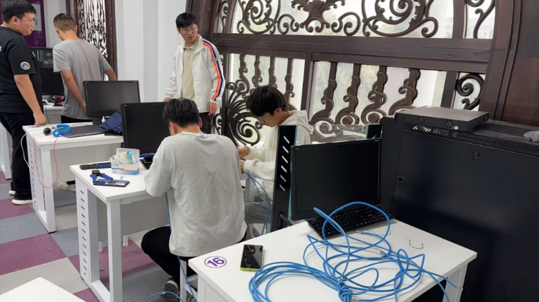 近日,学生们正专注地为软件测试实训平台搭建网络环境,一根根蓝色的网线在他们手中穿梭,连接着服务器与终端,也串联起他们对技能巅峰的追求。