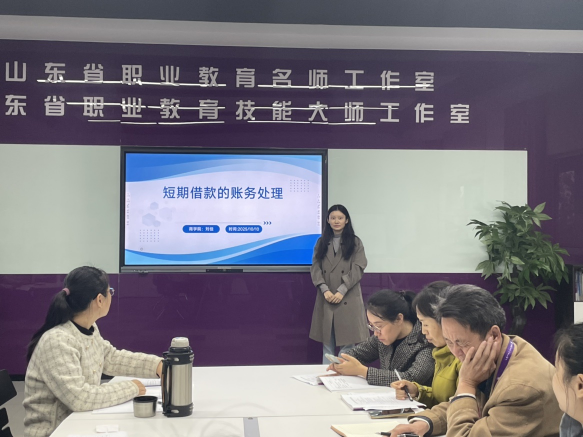 竞赛现场,四位教师各展所长。智慧财经教研室的老师刘佳以“短期借款账务处理——结合双十一筹备借款需求”为主题,紧密围绕电商企业备战“双十一”的资金周转案例,清晰拆解短期借款从借入、计息到偿还的全流程账务处理要点。通过“情景模拟+实操演示”,将抽象的财务知识具象化,既突出了教学内容的学术性与专业性,又契合学生认知特点,充分体现了以学生为中心的教学理念。
