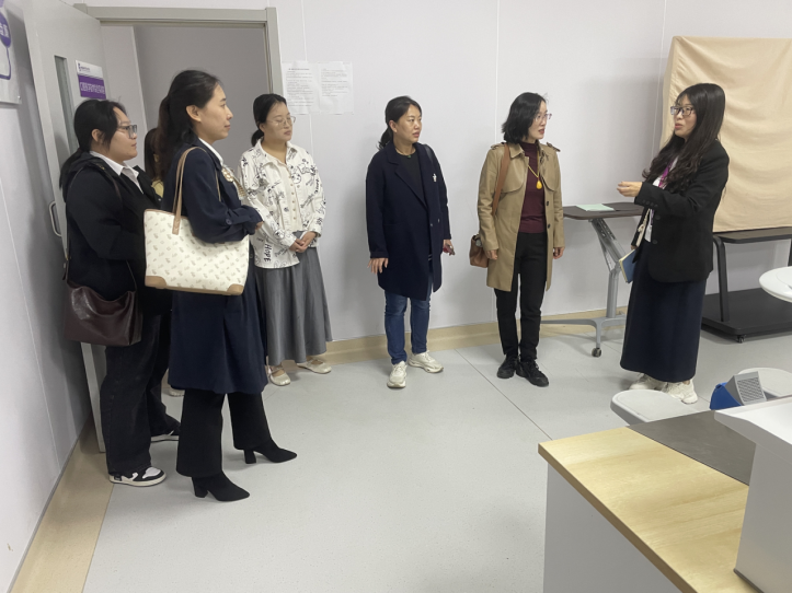 活动伊始,来访嘉宾实地参观实训楼的整体布局、设备配置与功能分区。王学屏结合智慧康养课程体系,详细介绍了实训设备如何模拟老年照护、康复护理等真实工作场景,以及如何通过 “理实一体化” 教学模式帮助学生提升实操能力。从智能护理床的操作演示,到康复评估设备的教学应用,每一处细节都引发嘉宾驻足询问,大家不时拿起设备说明书交流,对实训室 “专业化、场景化、智能化” 的建设标准给予高度评价。