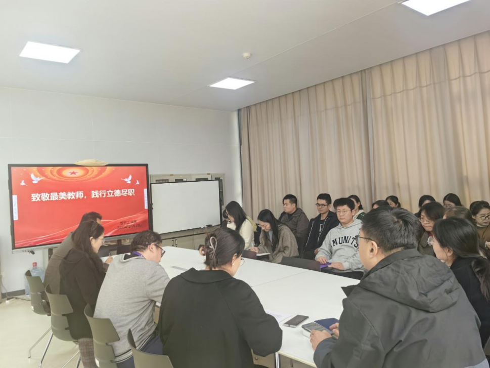 本次学习会以“学习重要论述,对标先进典型,强化‘立德尽职’使命担当”为主题。会议伊始,全体教师集中观看了《2025年齐鲁最美教师发布仪式》精选片段。一幕幕感人至深的场景,生动展现了“齐鲁最美教师”坚守教育报国初心、担当筑梦育人使命的崇高精神风貌,他们的先进事迹深深打动了在场的每一位教师,激发了大家见贤思齐的内在动力。