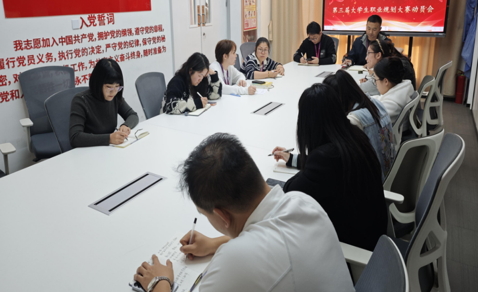 为深入贯彻教育部关于第三届全国大学生职业规划大赛 “以赛促学、以赛促教、以赛促就” 的核心目标,精准对接信息产业 AI、大数据、网络安全等领域人才需求,11 月 4 日,信息工程学院在会议室309召开第三届大学生职业规划大赛动员大会。学院院长杨立涛、学工院长韩连营、团总支部书记孟莉、教学秘书王玥,以及全体专兼职辅导员参加会议,会议由教学秘书王玥主持。